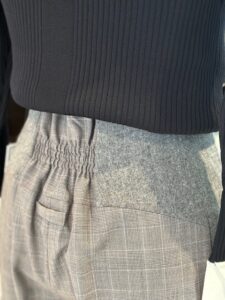 この切り替えの素材とジレが同素材なのです