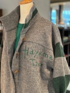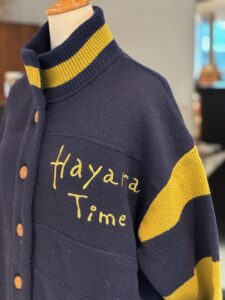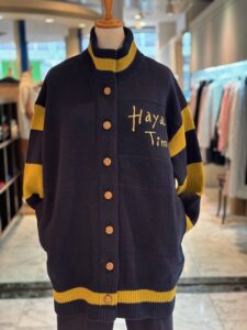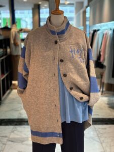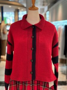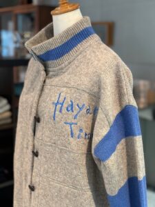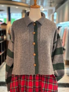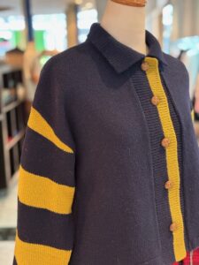 シェットランドニット 前立てと同系色で袖にボーダーを