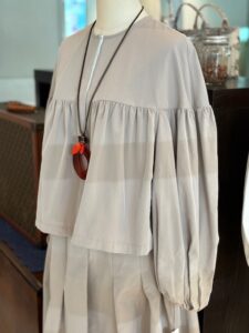 袖はパフスリーブ 前立ては小さなスナップになっています
